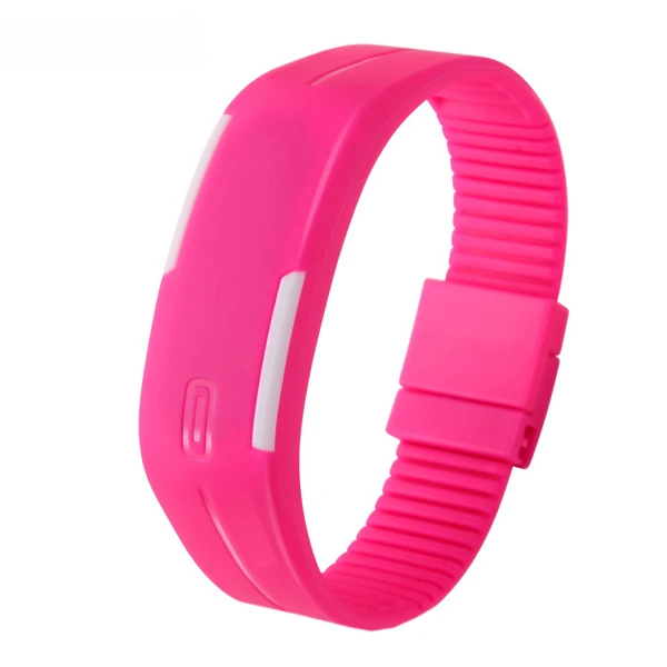 ساعت مچی 3 میلیمتری دیجیتال مدل دستبند استایل ورزشی، کژوال، موتور کوارتز، بدنه و بند سیلیکون به رنگ صورتی، دارای قفل مغناطیسی، ضد آب، قابلیت نمایش 24 ساعته